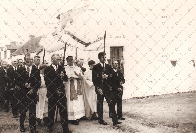 Le dais de procession est un baldaquin mobile, en soie ou en velours, le plus souvent rouge ou blanc, que l’on utilise pour abriter non seulement le Saint-Sacrement, mais aussi les reliques d’un saint, l’huile consacrée, une statue ou, bien que l’usage se soit perdu depuis, un haut dignitaire.