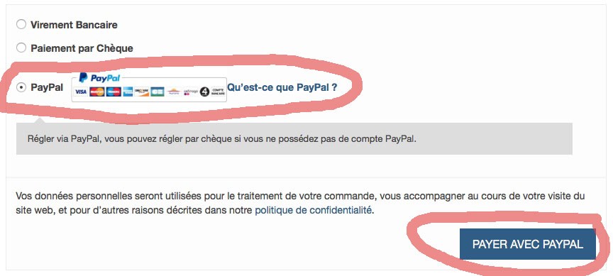 Lors de votre commande, vous devez choisir le mode de paiement par PayPal, puis valider « Payer avec PayPal ».