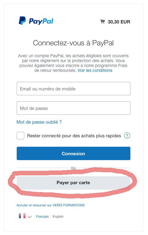 Comment payer par Paiement sécurisé par Carte Bancaire via Paypal