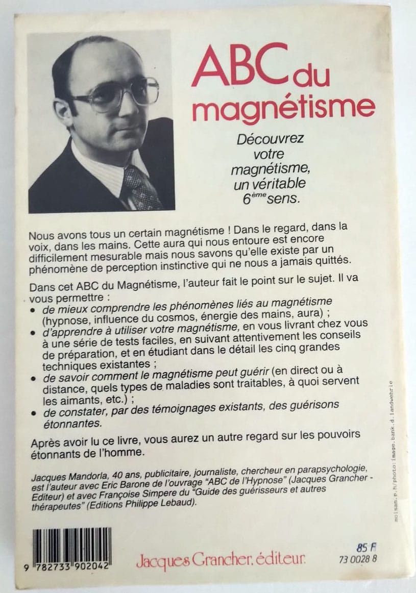 Nous avons tous un certain magnétisme ! Dans le regard, dans la voix, dans les mains. Cette aura qui nous entoure est encore difficilement mesurable mais nous savons qu’elle existe par un phénomène de perception instinctive qui ne nous a jamais quittés. Dans cet ABC du Magnétisme, l’auteur fait le point sur le sujet. Il va vous permettre : – de mieux comprendre les phénomènes liés au magnétisme (hypnose, influence du cosmos, énergie des mains, aura) ; – d’apprendre à utiliser votre magnétisme, en vous livrant chez vous à une série de tests faciles, en suivant attentivement les conseils de préparation, et en étudiant dans le détail les cinq grandes techniques existantes ; – de savoir comment le magnétisme peut guérir (en direct ou à distance, quels types de maladies sont traitables, à quoi servent les aimants, etc.) ; – de constater, par des témoignages existants, des guérisons étonnantes. Après avoir lu ce livre, vous aurez un autre regard sur les pouvoirs étonnants de l’homme.