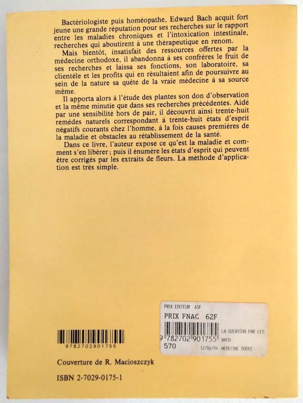 Bactériologiste puis homéopathe, Edward Bach acquit fort jeune une grande réputation pour ses recherches sur le rapport entre les maladies chroniques et l’intoxication intestinale, recherches qui aboutirent à une thérapeutique en renom. Mais bientôt, insatisfait des ressources offertes par la médecine orthodoxe, il abandonna à ses confrères le fruit de ses recherches et laissa ses fonctions, son laboratoire, sa clientèle et les profits qui en résultaient afin de poursuivre au sein de la nature sa quête de la vraie médecine à sa source même. Il apporta alors à l’étude des plantes son don d’observation et la même minutie que dans ses recherches précédentes. Aidé par une sensibilité hors de pair, il découvrit ainsi trente-huit remèdes naturels correspondant à trente-huit états d’esprit négatifs courants chez l’homme, à la fois causes premières de la maladie et obstacles au rétablissement de la santé. Dans ce livre, l’auteur expose ce qu’est la maladie et comment s’en libérer. puis il énumère les états d’esprit qui peuvent être corrigés par les extraits de fleurs. La méthode d’application est très simple.