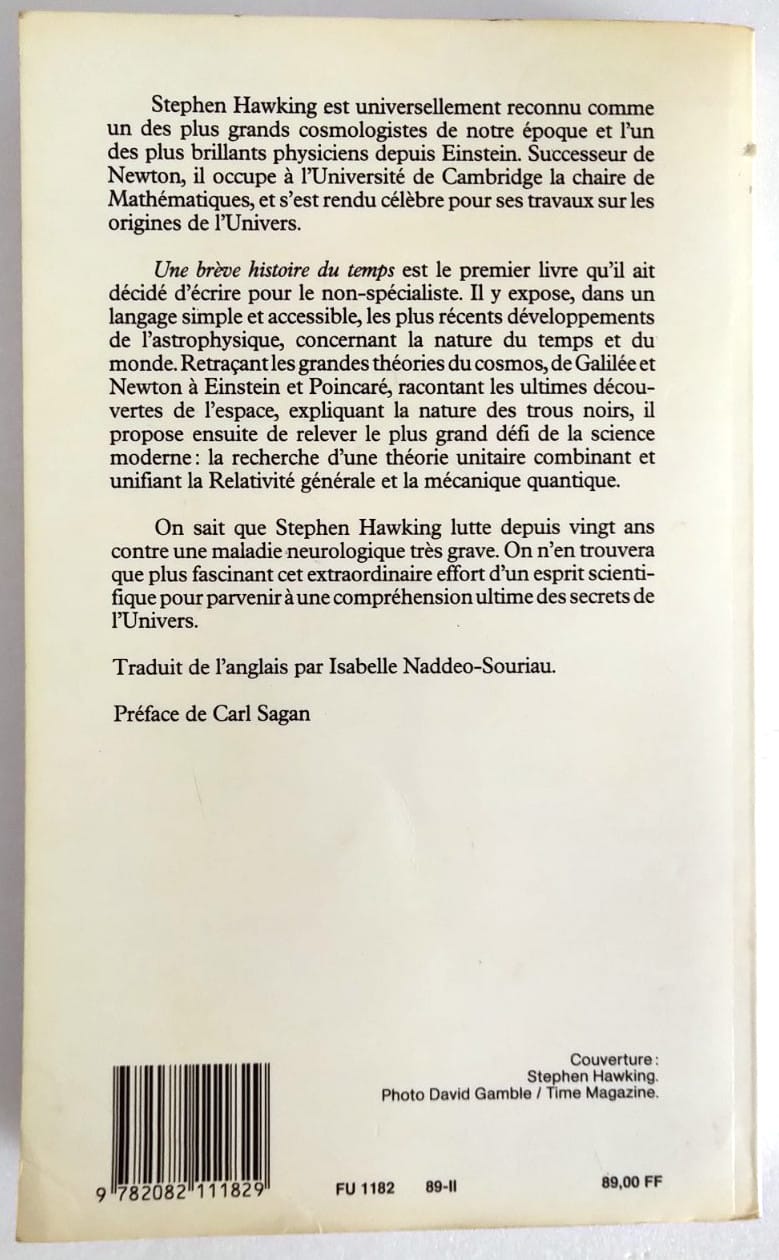 Titre : Une brève histoire du temps, du big bang aux trous noirs