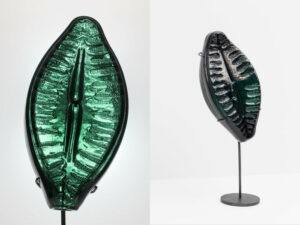 L’artiste-chercheuse Atelier Lucile Viaud et le verrier Stéphane Rivoal Silicybine s’en sont inspirés pour concevoir et réaliser des sculptures en verre marin Glaz représentant ces diatomées.