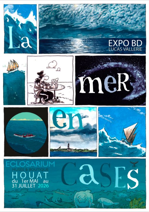 Du 01 Mai au 31 Juillet 2026, l’Éclosarium de Houat accueille l’exposition « La mer en cases » de l’auteur et dessinateur Lucas Vallerie.