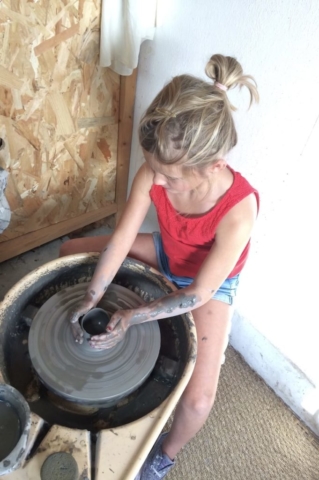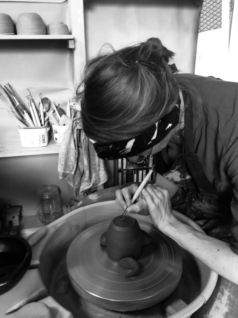 En 2017, l’envie de créer son atelier sur l’île de Houat commence à murir. Et le rêve devient peu à peu réalité… Elle se lance, installe son atelier à l’entrée du village, investit dans du matériel, achète un tour et un four de potier, et créé sa micro-entreprise. « Toutes les étapes de cet art ancestral sont aussi passionnantes les unes que les autres ».