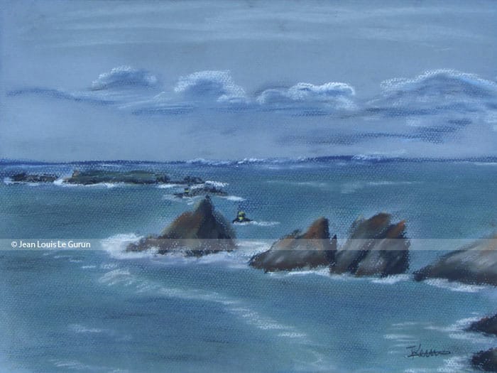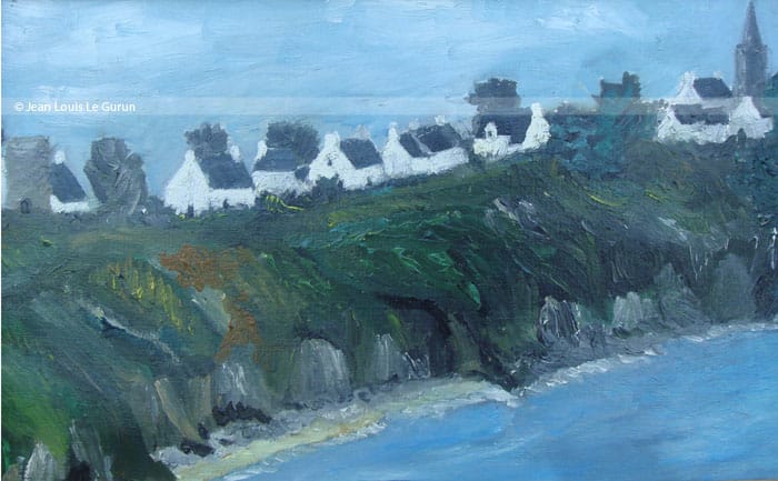 Au premier coup d’oeil, on reconnaît le style de Jean-Louis Le Gurun. Sa technique est bien à lui et sa gamme de couleur est très personnelle. Il donne aux paysages de Houat une autre interprétation que je trouve très talentueuse et très prometteuse. On espère seulement que lui aussi va profiter de sa retraite pour peindre plus de tableaux et en faire, souhaitons le lui, une activité artistique à plein temps.