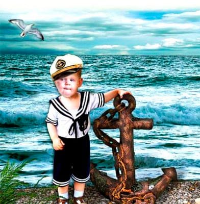 Le kitch des montages photos de Marie-Christine Le Fur – Buzit me fait penser aux décorations asiatiques : toutes en couleurs et en associations improbables. J’aime ce refus du systématisme et son amour de la famille et de Houat. Raffraîchissant !