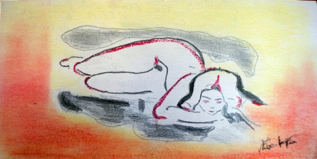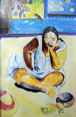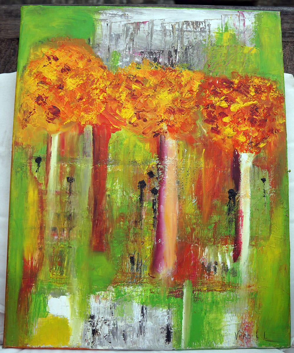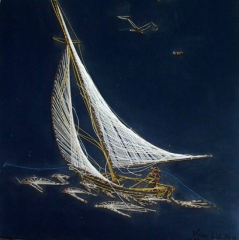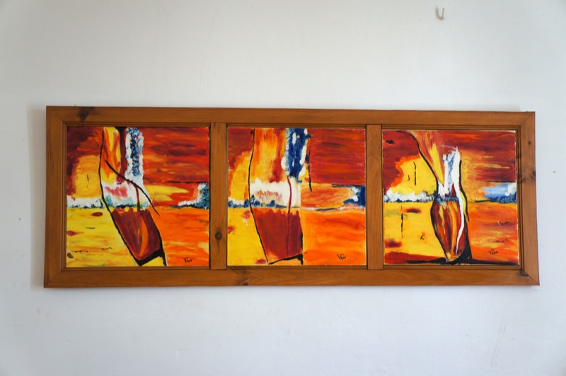 Véronique le Fur-Le Léannec voit loin, plus loin que la route du Tal où elle a passé une partie de son enfance. Artiste typée et touche à tout, elle varie les techniques, les styles autour de ses thèmes favoris : le voyage et la mer. De Houat, elle s’inspire pour ses marines et elle s’évade avec des essais sur Gaugin et Monet. L’Afrique l’attire, noire ou celle des rues de Tunisie…