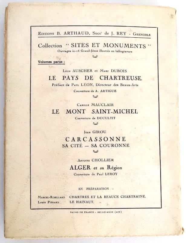 Table des matières : La baie – Le port – Quartiers espagnol et juif – Le Parc Galland et le Musée des antiquités – La Cathédrale Saint-Philippe – Le jardin Marengo – Villas et hôtels de Mustapha supérieur – Palais d’été du Gouverneur – La ville arabe – La Casbah – La Medersa Tsalibia – Le cimetière d’El Kettar – Les mosquées – Les palais arabes – Côte est – Maison carrée – Matifou – Les ruines de Rusguniae – Aumale et Bouira – Vers le grand Djurdjura – Côte ouest – Le Tombeau de la Chrétienne – Tipasa et Cherchell – Vers Hammam Righa et Miliana – Les coteaux du Sahel – La Mitidja – Chréa.