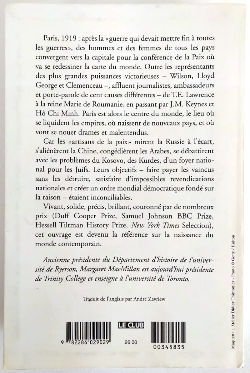 Paris, 1919 : après la Grande Guerre, des hommes et des femmes de tous les pays convergent vers la capitale pour la conférence de la Paix, où va se redessiner la carte du monde. Outre les représentants des puissances victorieuses – Wilson, Lloyd George et Clemenceau – affluent journalistes, ambassadeurs et porte-parole de cent causes différentes – de T. E. Lawrence à la reine Marie de Roumanie, en passant par J.M. Keynes et Hô Chi Minh. Paris est alors le lieu où se liquident les empires, où naissent de nouveaux pays, et où vont se nouer drames et malentendus…