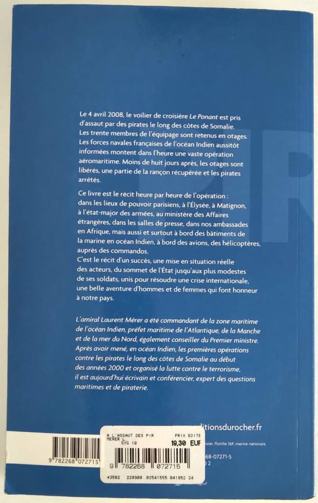 Le 4 avril 2008, le voilier de croisière Le Ponant est pris d’assaut par des pirates le long des côtes de Somalie. Les trente membres de l’équipage sont retenus en otages. Les forces navales françaises de l’océan Indien aussitôt informées montent dans l’heure une vaste opération aéromaritime. Moins de huit jours après, les otages sont libérés, une partie de la rançon récupérée et les pirates arrêtés. Ce livre est le récit heure par heure de l’opération : dans les lieux de pouvoir parisiens, à l’Élysée, à Matignon, à l’état-major des armées, au ministère des Affaires étrangères, dans les salles de presse, dans nos ambassades en Afrique, mais aussi et surtout à bord des bâtiments de la marine en océan Indien, à bord des avions, des hélicoptères, auprès des commandos. C’est le récit d’un succès, une mise en situation réelle des acteurs, du sommet de l’État jusqu’aux plus modestes de ses soldats, unis pour résoudre une crise internationale, une belle aventure d’hommes et de femmes qui font honneur à notre pays.