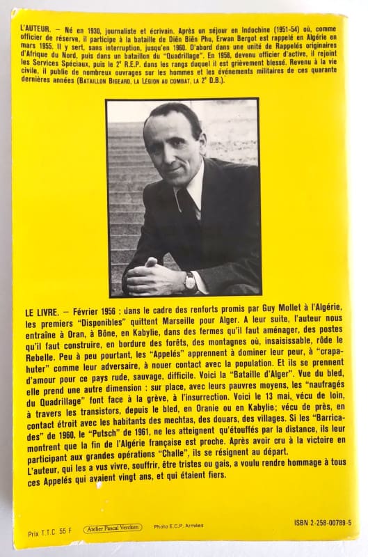 Février 1956 : dans le cadre des renforts promis par Guy Mollet à l’Algérie, les premiers « Disponibles » quittent Marseille pour Alger. A leur suite, l’auteur nous entraîne à Oran, à Bône, en Kabylie, dans des fermes qu’il faut aménager, des postes qu’il faut construire, en bordure des forêts, des montagnes où, insaisissable, rôde le Rebelle. Peu à peu pourtant, les « Appelés » apprennent à dominer leur peur, à « crapahuter » comme leur adversaire, à nouer contact avec la population. Et ils se prennent d’amour pour ce pays rude, sauvage, difficile. Voici la « Bataille d’Alger ». Vue du bled, elle prend une autre dimension : sur place, avec leurs pauvres moyens, les « naufragés du Quadrillage » font face à la grève, à l’insurrection. Voici le 13 mai, vécu de loin, à travers les transistors, depuis le bled, en Oranie ou en Kabylie ; vécu de près, en contact étroit avec les habitants des mechtas, des douars, des villages. Si les « Barricades » de 1960, le « Putsch » de 1961 ne les atteignent qu’étouffés par la distance, ils leur montrent que la fin de l’Algérie française est proche. Après avoir cru à la victoire en participant aux grandes opérations « Challe », ils se résignent au départ. L’auteur, qui les a vus vivre, souffrir, être tristes ou gais, a voulu rendre hommage à tous ces Appelés qui avaient vingt ans, et qui étaient fiers.