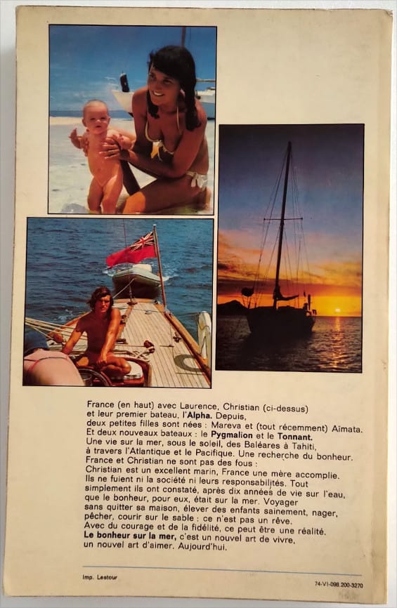 Laurence naît alors qu’ils se trouvent en Europe, prêts à embarquer sur l’Alpha, un voilier de 9,50 m. Ses parents n’hésitent pas à emmener le bébé de trois semaines dans ce voyage qui, à travers l’Atlantique et le Pacifique, en passant par les Antilles, les ramènera à Tahiti.