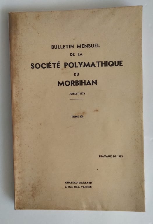 Titre : Bulletin mensuel de la Société Polymathique du Morbihan, juillet 1974, Tome 101, travaux de 1973