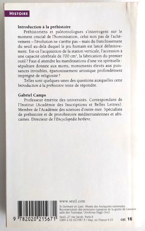 Titre : Introduction à la Préhistoire, à la recherche du paradis perdu