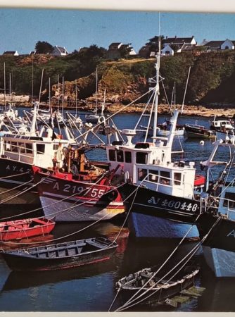 Vue couleur de la flotte de bateaux de pêche à quai dans le Port Saint-Gildas de Houat