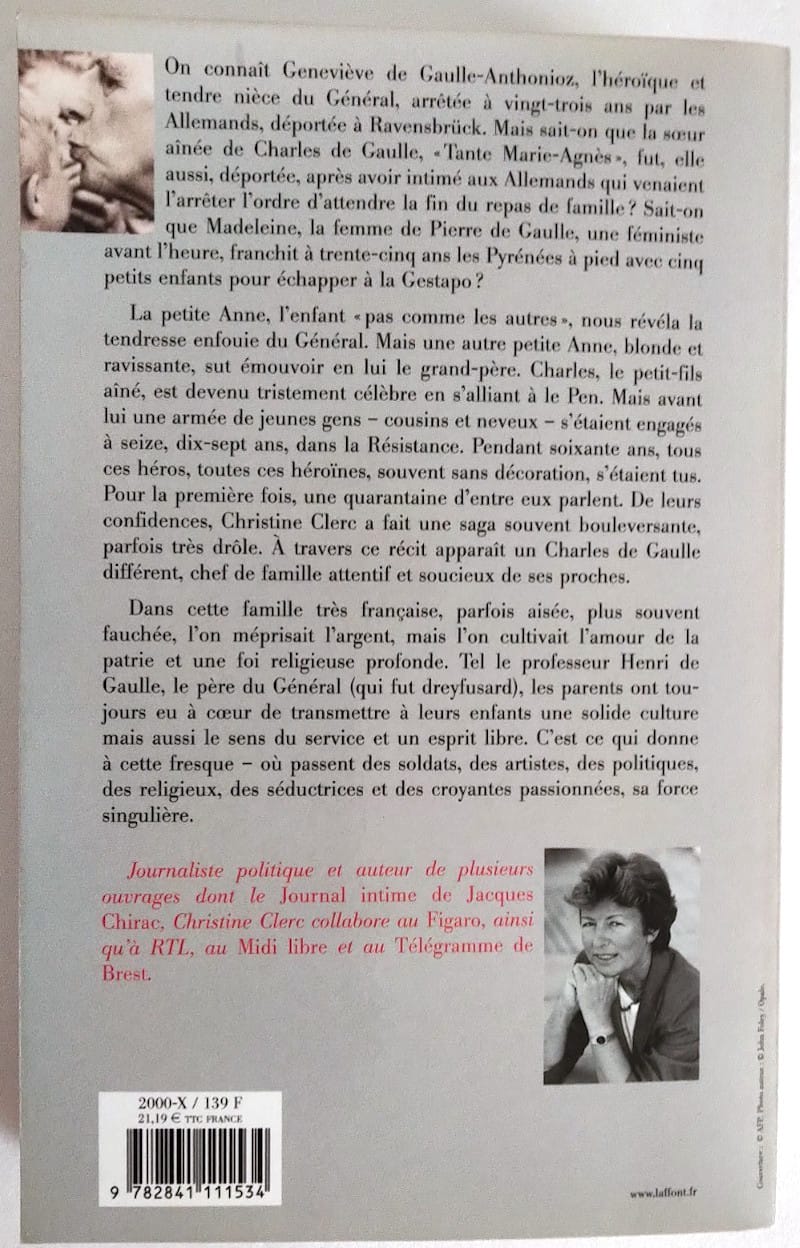 De leurs confidences, Christine Clerc a fait une saga souvent bouleversante, parfois très drôle. À travers ce récit apparaît un Charles de Gaulle différent, chef de famille attentif et soucieux de ses proches.