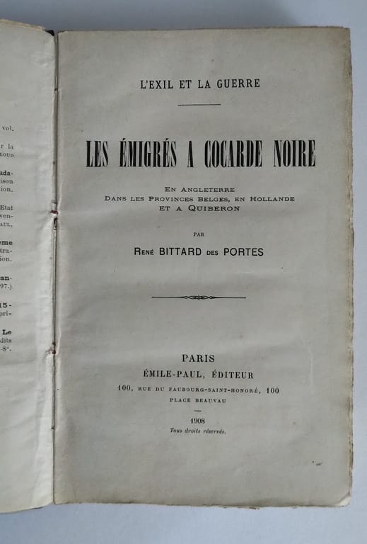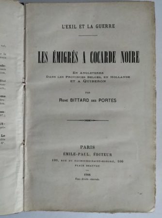 Titre : Les Émigrés à Cocarde Noire, en Angleterre, dans les provinces belges, en Hollande et à Quiberon