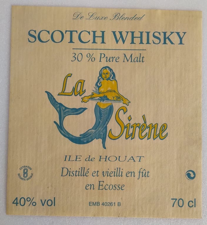 Étiquette Whisky originale et authentique de l’hôtel restaurant LA SIRÈNE, île de Houat