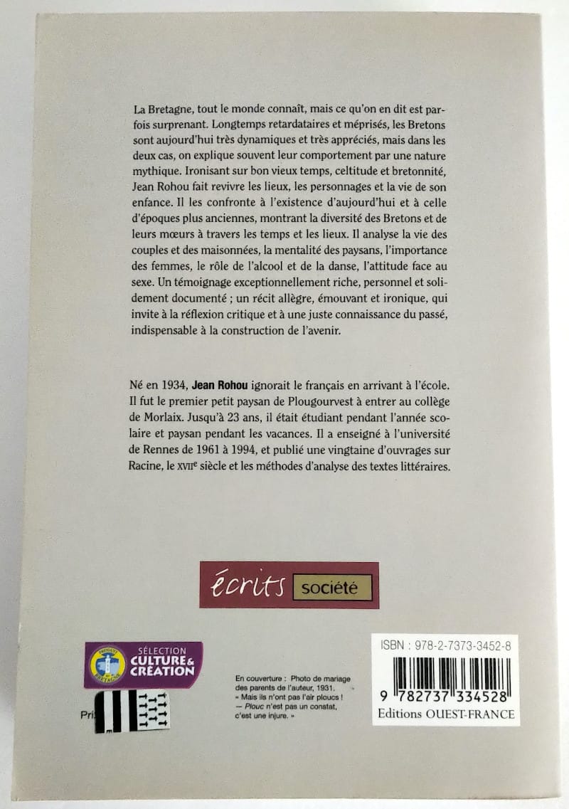 La Bretagne, tout le monde connaît ; mais ce qu’on en dit est parfois surprenant. Longtemps retardataires et méprisés, les Bretons sont aujourd’hui très dynamiques et très appréciés. Ironisant sur un bon vieux temps, celtitude et bretonnité, l’auteur, solidement documenté, restitue la réalité de son enfance : la ferme, les personnes, la vie quotidienne. Il les replace dans leur contexte, les confronte à la vie d’aujourd’hui et à celle d’époques plus anciennes. Il insiste sur la diversité des « pays » bretons et de leurs habitants. Il analyse la vie des couples et des maisonnées, la mentalité des paysans, l’importance des femmes, le rôle de l’alcool. L’auteur nous invite dans ce livre, à la réflexion critique à partir d’une juste connaissance du passé, indispensable à la construction de l’avenir.