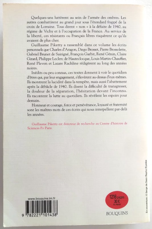 Guillaume Piketty a rassemblé dans ce volume les écrits personnels que Charles d’Aragon, Diego Brosset, Pierre Brossolette, Gabriel Brunet de Sairigné, François Garbit, René Génin, Claire…