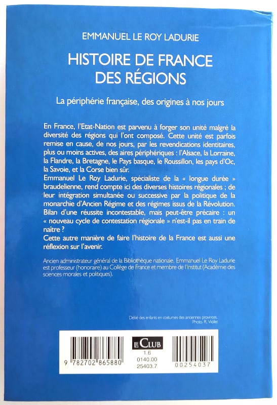 Emmanuel Le Roy Ladurie, spécialiste de la « longue durée » braudelienne, rend compte ici des diverses histoires régionales ; de leur intégration simultanée ou successive par la politique de la monarchie d’Ancien Régime et des régimes issus de la Révolution. Bilan d’une réussite incontestable, mais peut-être précaire : un «nouveau cycle de contestation régionale» n’est-il pas en train de naître ?