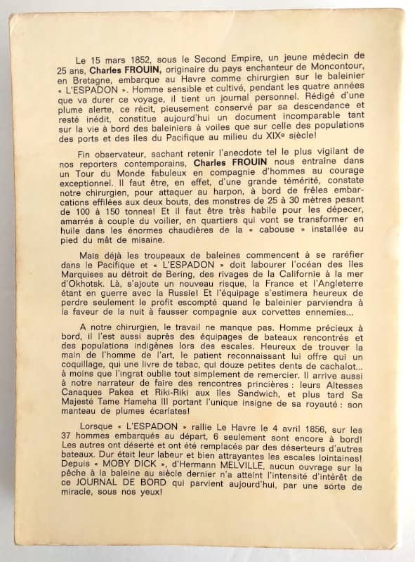 Titre : Chirurgien du baleinier l’Espadon, Journal de bord 1852 – 1856