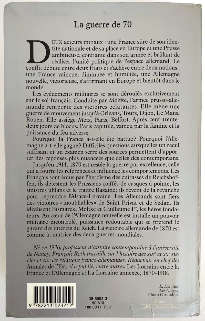 Deux acteurs initiaux : une France sûre de son identité nationale et de sa place en Europe et une Prusse ambitieuse, confiante dans son armée et brûlant de réaliser l’unité politique de l’espace allemand. Le conflit débute entre deux nations : une France vaincue, diminuée et humiliée, une Allemagne nouvelle, victorieuse, s’affirmant en Europe et bientôt dans le monde. Les événements militaires se sont déroulés exclusivement sur le sol français. Conduite par Moltke, l’armée prusso-allemande remporte des victoires éclatantes. Elle mène une guerre de mouvement jusqu’à Orléans, Tours, Dijon, Le Mans, Rouen. Elle assiège Metz, Paris, Belfort. Après cent-trente-deux jours de blocus, Paris capitule, vaincu par la famine et la puissance du feu adverse. Pourquoi la France a-t-elle été battue ? Pourquoi l’Allemagne a-t-elle gagné ? Difficiles questions auxquelles un recul suffisant et un examen serré des sources permettent d’apporter des réponses plus nuancées que celles des contemporains.