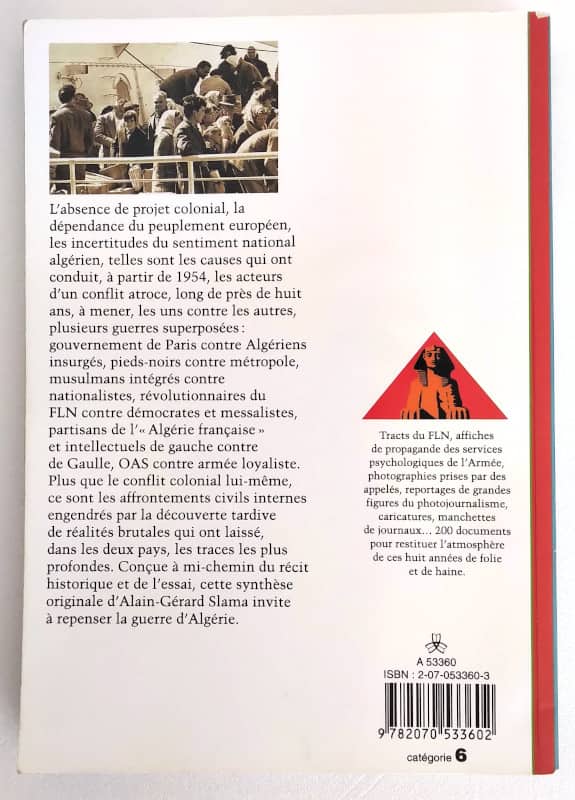 L’absence de projet colonial, la dépendance du peuplement européen, les incertitudes du sentiment national algérien, telles sont les causes qui ont conduit, à partir de 1954, les acteurs d’un conflit atroce, long de près de huit ans, à mener, les uns contre les autres, plusieurs guerres superposées : gouvernement de Paris contre Algériens insurgés, pieds-noirs contre métropole, musulmans intégrés contre nationalistes, révolutionnaires du FLN contre démocrates et messalistes, partisans de l' »Algérie française » et intellectuels de gauche contre de Gaulle, OAS contre armée loyaliste. Plus que le conflit colonial lui-même, ce sont les affrontements civils internes engendrés par la découverte tardive de réalités brutales qui ont laissé, dans les deux pays, les traces les plus profondes. Conçue à mi-chemin du récit historique et de l’essai, cette synthèse originale d’Alain-Gérard Slama invite à repenser la guerre d’Algérie.