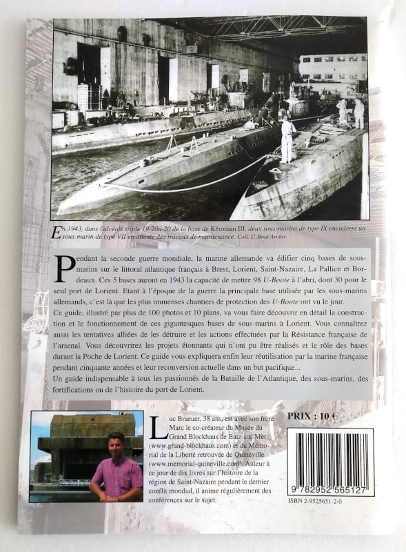 Ce guide, illustré par plus de 100 photos et plans, vous propose de découvrir en détails la construction et le fonctionnement de ces gigantesques bases de sous-marins à Lorient. Vous connaîtrez aussi les tentatives alliées de les détruire et les actions effectuées par la Résistance française de l’arsenal. Vous découvrirez les projets étonnants qui n’ont pu être réalisés et le rôle des bases durant la Poche de Lorient. Ce guide vous expliquera enfin leur réutilisation par la marine française pendant cinquante années et leur reconversion actuelle dans un but pacifique…