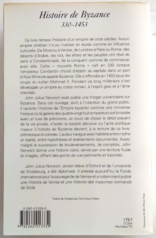 John Julius Norwich avait publié une trilogie universitaire sur Byzance. Dans cet ouvrage, écrit à l’intention du grand public, il raconte l’histoire de l’Empire byzantin comme une immense fresque où la galerie des quatre-vingt-huit empereurs est brossée avec un luxe de précisions, un souci de choisir le détail piquant de la vie privée, d’isoler la bataille décisive ou l’acte politique majeur. L’histoire de Byzance devient, à la lecture de ce livre, pittoresque et colorée. L’auteur navigue avec habileté entre mythe et réalité, entre hypothèses et événements documentés. Aussi, malgré la succession de bouleversements, de complots, John Norwich donne une histoire claire, servie par une écriture fluide et imagée, offrant des points de vue pertinents et tranchés.