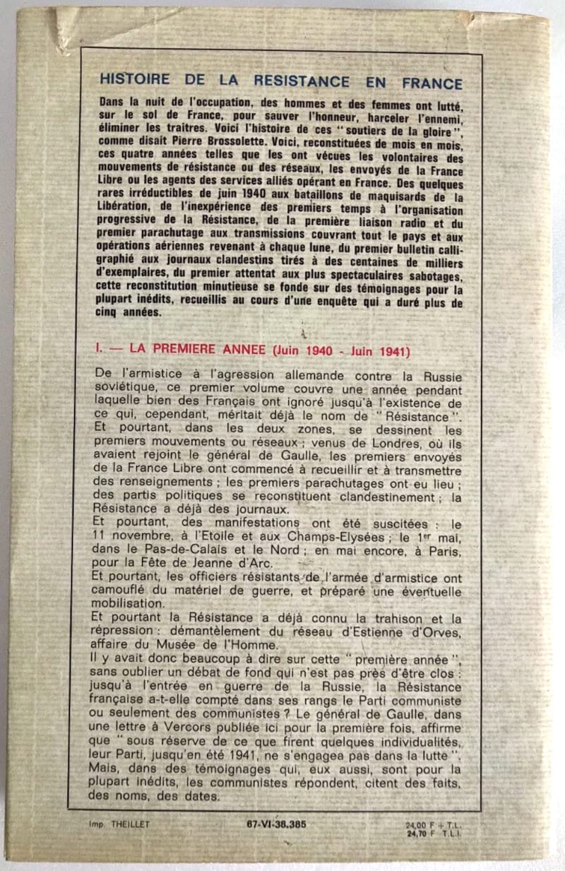 Titre : Histoire de la Résistance en France, Juin 1940 – Juin 1941, Tome 1