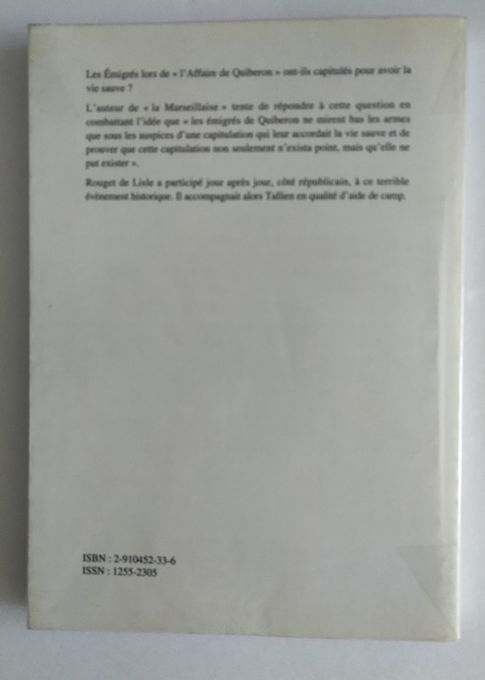 L’auteur de la MARSEILLAISE tente de répondre a cette question en combattant que « les émigrés ne mirent bas les armes que sous les auspices d’une capitulation qui leur accordait la vie sauve, et de prouver que cette capitulation n’exista point mais qu’elle ne put exister !! ».