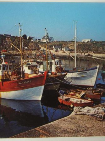 Vue couleur de la flotte de bateaux de pêche à quai dans le Port Saint-Gildas de Houat