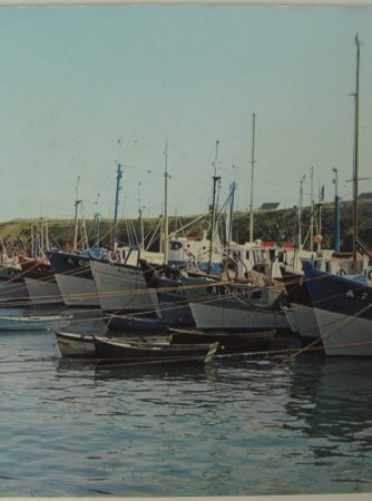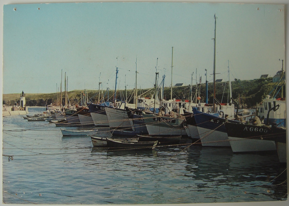 Vue couleur de la flotte de bateaux de pêche à quai dans le Port Saint-Gildas de Houat