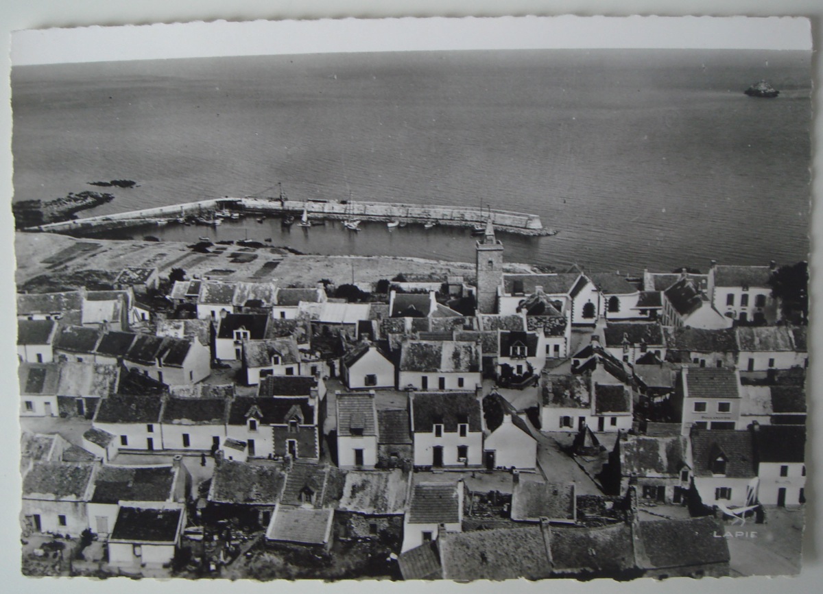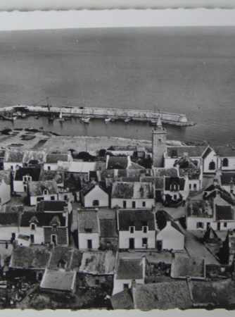 Vue aérienne noir et blanc du village et du Port St Gildas (en construction : sans phare)