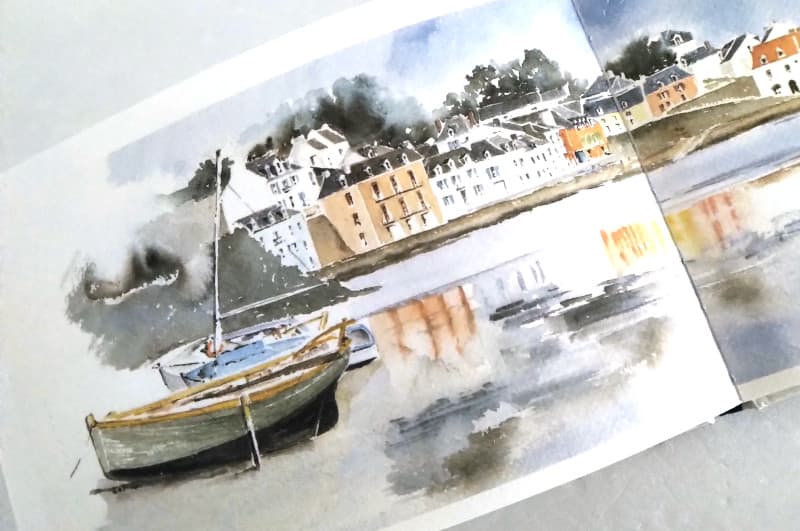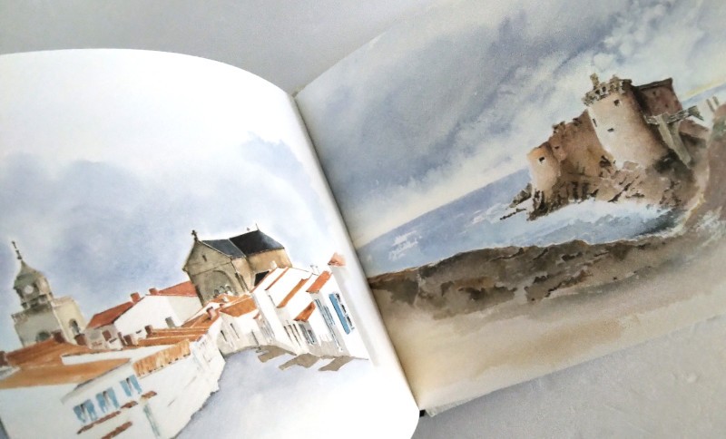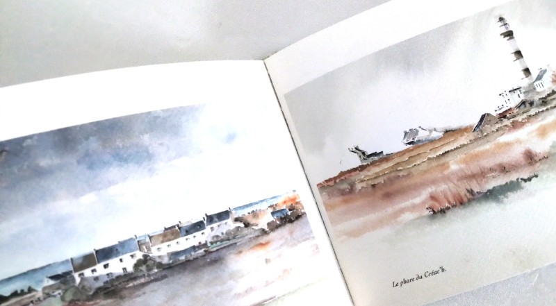 Les îles du Ponant : toutes fascinantes mais si différentes ! » Elles flottent entre terre et ciel quand la mer se confond à celui-ci… » De chacune se dégagent un charme subtil et une ambiance particulière. Le poète nous raconte les lumières de ces » constellations terrestres « . L’aquarelliste fait chanter ses couleurs et recrée pour nous les émotions qu’elle a ressenties devant ces paysages marins.