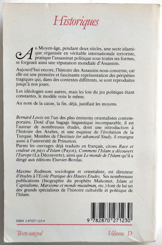 Titre : Les Assassins, Terrorisme et politique dans l’islam médiéval
