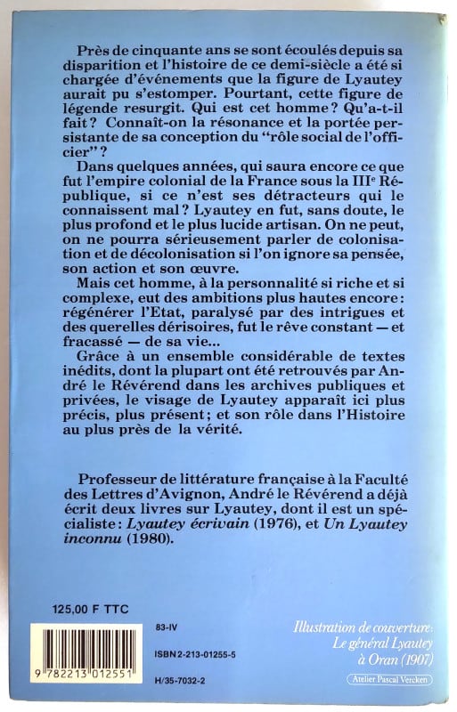 Près de cinquante ans se sont écoulés depuis sa disparition et l’histoire de ce demi-siècle a été si chargée d’événements que la figure de Lyautey aurait pu s’estomper. Pourtant, cette figure de légende resurgit. Qui est cet homme? Qu’a-t-il fait? Connaît-on la résonance et la portée persistante de sa conception du » rôle social de l’officier « ? Dans quelques années, qui saura encore ce que fut l’empire colonial de la France sous la IIIe République, si ce n’est ses détracteurs qui le connaissent mal? Lyautey en fut, sans doute, le plus profond et le plus lucide artisan. On ne peut, on ne pourra sérieusement parler de colonisation et de décolonisation si l’on ignore sa pensée, son action et son oeuvre. Mais cet homme, à la personnalité si riche et si complexe, eut des ambitions plus hautes encore: régénérer l’Etat, paralysé par des intrigues et des querelles dérisoires, fut le rêve constant et fracassé de sa vie… Grâce à un ensemble considérable de textes inédits, dont la plupart ont été retrouvés par André le Révérend dans les archives publiques et privées, le visage de Lyautey apparaît ici plus précis, plus présent; et son rôle dans l’Histoire au plus près de la vérité.