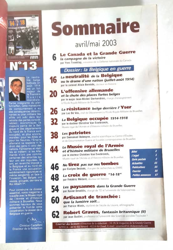 Titre : 14-18 – Le Magazine de la Grande Guerre – N°13 : La Belgique en guerre