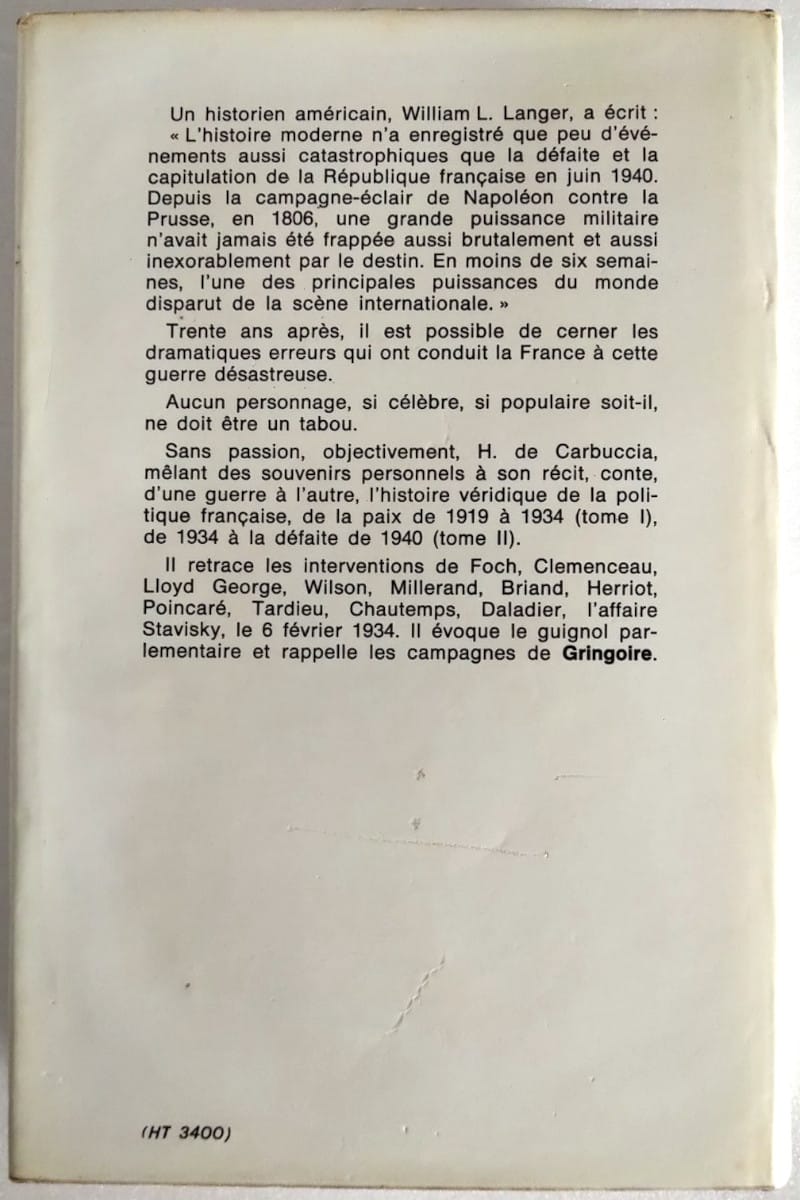 Un historien américain, William L. Langer, a écrit : « L’histoire moderne n’a enregistré que peu d’événements aussi catastrophiques que la défaite et la capitulation de la République française en juin 1940. Depuis la campagne-éclair de Napoléon contre la Prusse, en 1806, une grande puissance militaire n’avait jamais été frappée aussi brutalement et aussi inexorablement par le destin. En moins de six semaines, l’une des principales puissances du monde disparut de la scène internationale. » Trente ans après, il est possible de cerner les dramatiques erreurs qui ont conduit la France à cette guerre désastreuse.