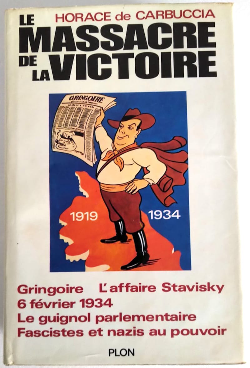Titre : Le massacre de la victoire 1939-1934, Gringoire, l’affaire Stavisky 6 février 1934, le guignol parlementaire, fascistes et nazis au pouvoir