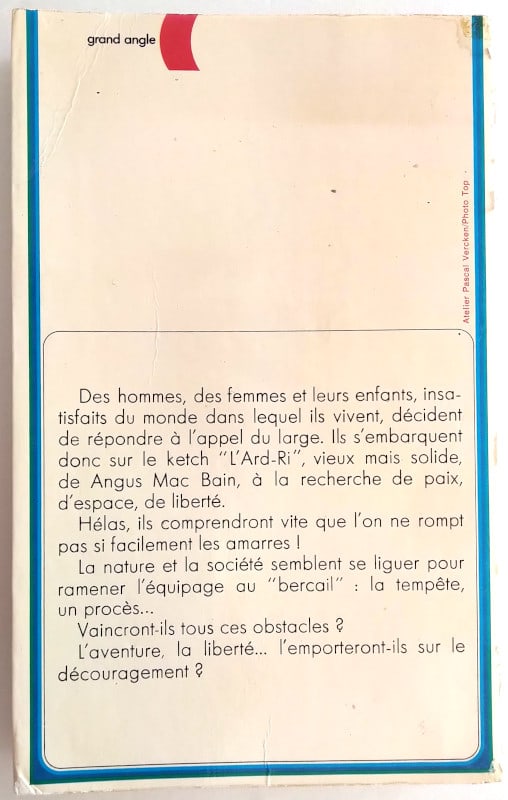 Des hommes, des femmes et leurs enfants, insatisfaits du monde dans lequel ils vivent, décident de répondre à l’appel du large. Ils s’embarquent donc sur le ketch “L’Ard-Ri”, vieux mais solide, de Angus Mac Bain, à la recherche de paix, d’espace, de liberté. Hélas, ils comprendront vite que l’on ne rompt pas si facilement les amarres ! La nature, et la société, semblent se liguer pour ramener l’équipage au “bercail” : la tempête, un procès… Vaincront-ils tous ces obstacles ? L’aventure, la liberté… l’emporteront-ils sur le découragement ?
