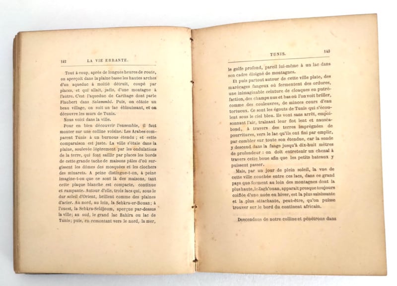 « En Algérie et dans le Sahara algérien, toutes les femmes, celles des villes comme celles des tribus, sont vêtues de blanc. En Tunisie, au contraire, celles des cités sont enveloppées de la tête aux pieds en des voiles de mousseline noire qui en font d étranges apparitions dans les rues si claires des petites villes du sud, et celles des campagnes sont habillées avec des robes gros bleu d un gracieux et grand effet, qui leur donne une allure encore plus biblique. (.) Sur cette terre amollissante et tiède, si captivante que la légende des Lotophages y est née dans l’île de Djerba, l’air est plus savoureux que partout, le soleil plus chaud, le jour plus clair, mais le coeur ne sait pas aimer. Les femmes belles et ardentes, sont ignorantes de nos tendresses. Leur âme simple reste étrangère aux émotions sentimentales, et leurs baisers, dit-on, n’enfantent point le rêve. » (vers Kairouan, septième chapitre de La vie errante).