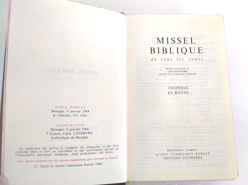 Imprimatur Cardinal Lefebvre, archevêque de Bourges
