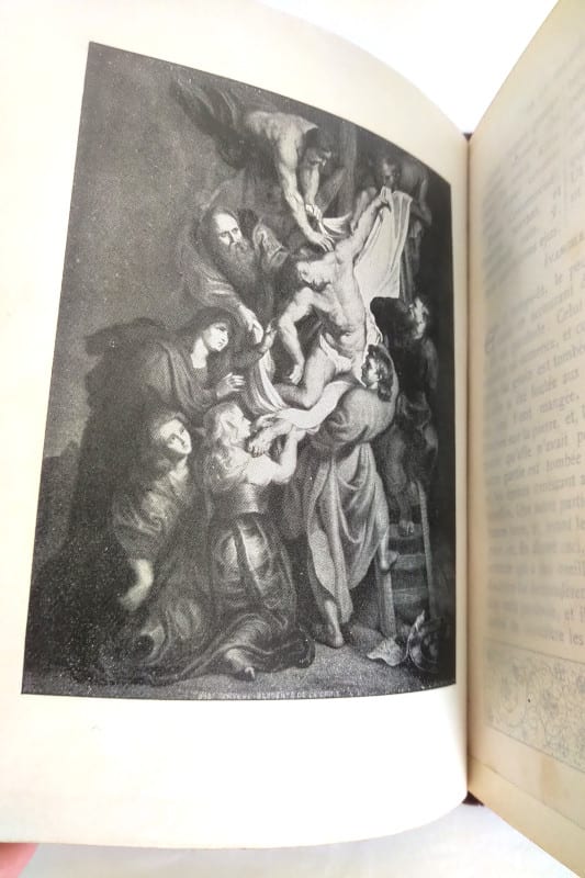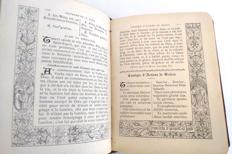 Textes rehaussés à chaque page d’illustrations pieuses en N&B