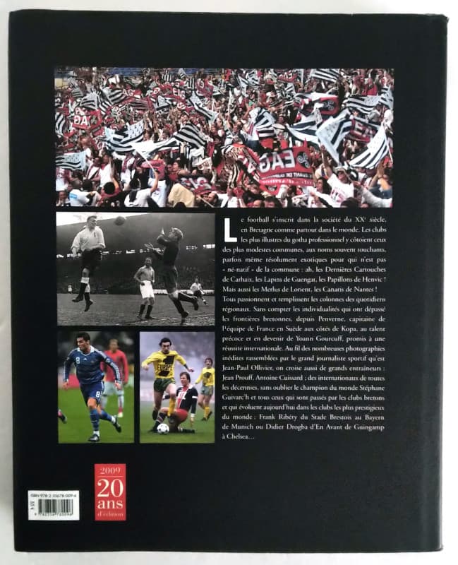 Le football s’inscrit dans la société du XXe siècle, en Bretagne comme partout dans le monde. Les clubs les plus illustres du gotha professionnel y côtoient ceux des plus modestes communes, aux noms souvent touchants, parfois même résolument exotiques pour qui n’est pas « né-natif » de la commune : ah, les Dernières Cartouches de Carhaix, les Lapins de Guengat, les Papillons de Henvic ! Mais aussi les Merlus de Lorient, les Canaris de Nantes ! Tous passionnent et remplissent les colonnes des quotidiens régionaux. Sans compter les individualités qui ont dépassé les frontières bretonnes, depuis Penverne, capitaine de l’équipe de France en Suède aux côtés de Kopa, au talent précoce et en devenir de Yoann Gourcuff, promis à une réussite internationale. Au fil des nombreuses photographies inédites rassemblées par le grand journaliste sportif qu’est Jean-Paul Ollivier, on croise aussi de grands entraîneurs : Jean Prouff, Antoine Cuissard ; des internationaux de toutes les décennies, sans oublier le champion du monde Stéphane Guivarc’h et tous ceux qui sont passés par les clubs bretons et qui évoluent aujourd’hui dans les clubs les plus prestigieux du monde : Frank Ribéry du Stade Brestois au Bayern de Munich ou Didier Drogba d’En Avant de Guingamp à Chelsea…