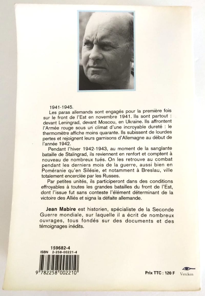 1941-1945. Les paras allemands sont engagés pour la première fois sur le front de l’Est en novembre 1941. Ils sont partout devant Leningrad, devant Moscou, en Ukraine. Ils affrontent l’Armée rouge sous un climat d’une incroyable dureté : le thermomètre affiche moins quarante. Ils subissent de lourdes pertes et rejoignent leurs garnisons d’Allemagne au début de l’année 1942. Pendant l’hiver 1942-1943, au moment de la sanglante bataille de Stalingrad, ils reviennent en renfort et comptent à nouveau de nombreux tués. On les retrouve au combat pendant les derniers mois de la guerre, aussi bien en Poméranie qu’en Silésie, et notamment à Breslau, ville totalement encerclée par les Russes. Par petites unités, ils participeront dans des conditions effroyables à toutes les grandes batailles du front de l’Est, dont l’issue fut sans conteste l’élément déterminant de la victoire des Alliés et signa la défaite allemande.