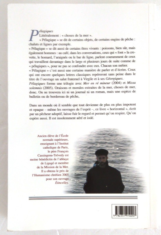 Pélagiques forme une trilogie avec Mer en ré mineur (2004) et Missa solemnis (2005). Oraisons et morales extraites de la mer, choses de mer, donc. On ne trouvera ici ni un journal ni un roman, mais une espèce de bulletin ou de bordereau de pêche.