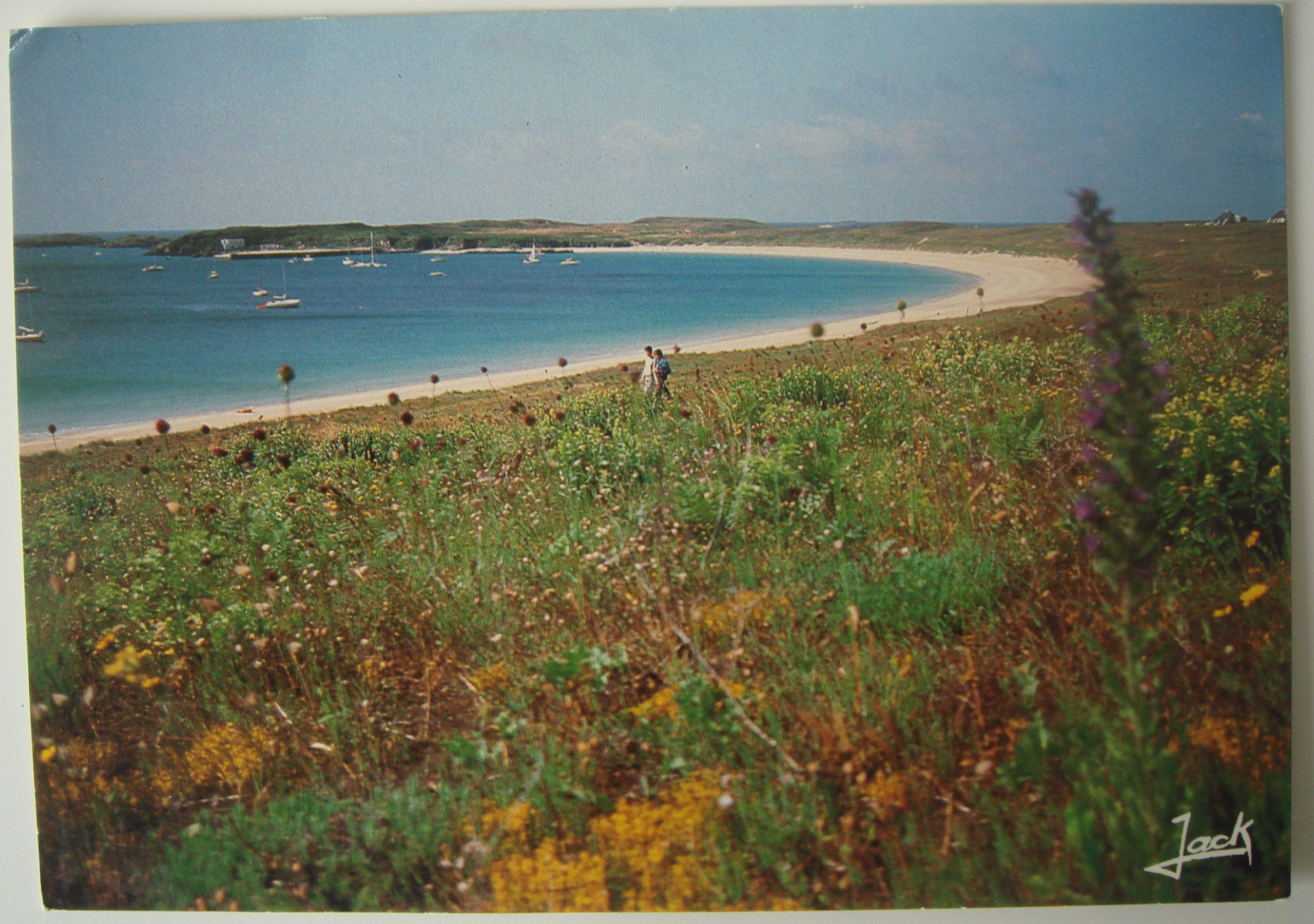 Vue couleur de la Grande Plage et du Vieux Port de Houat